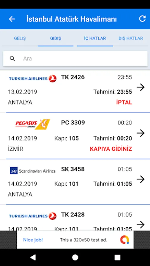 Flight Information mobile app shows the arrival and departure flight information of domestic and international flights of airport flights.