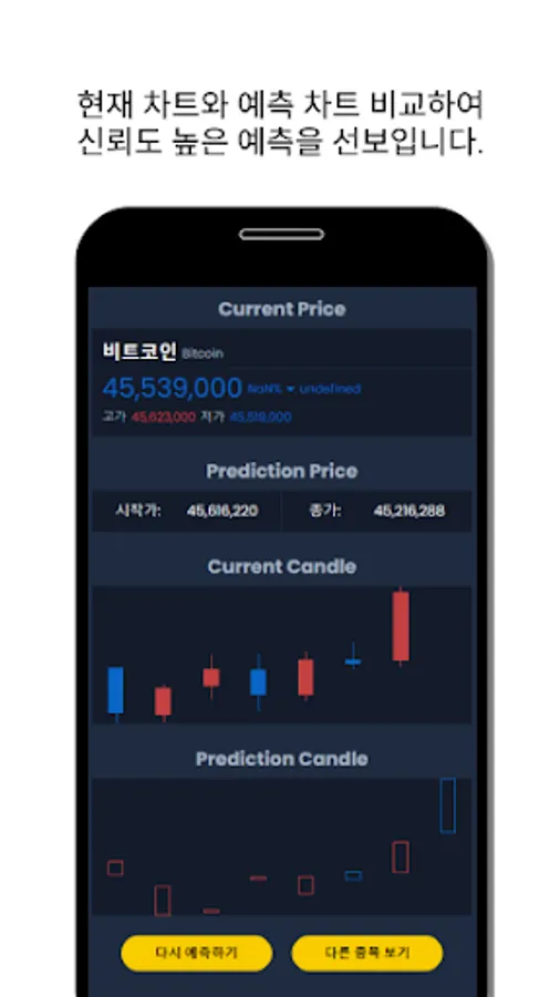 현재 차트와 예측 차트를 비교하여 신뢰도 높은 예측을 선보입니다.