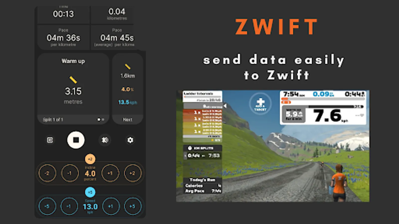 ⦿ Zwift Compatibility - The FitCast feature enables non-compatible treadmills to be used with Zwift. It also enables the control of speed and incline while using Zwift. This feature can also be used with other apps like BitGym, Rouvy and Peloton.