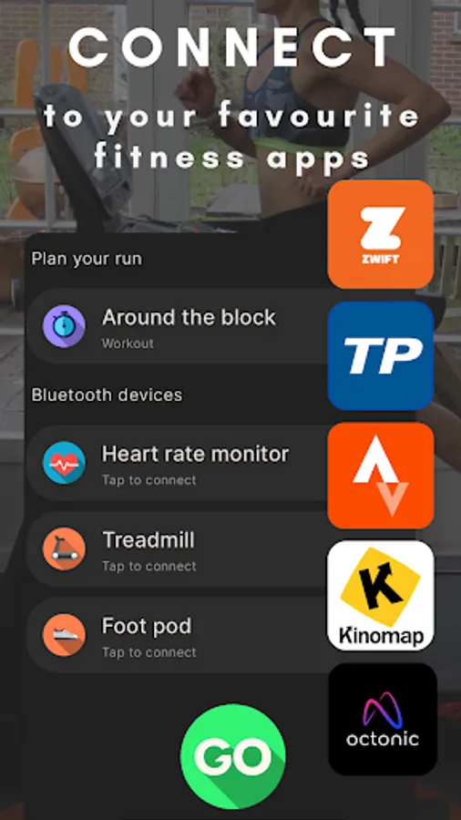 ⦿ Bluetooth Device - Connect to a wide range of Bluetooth devices including treadmills, foot pods and heart rate monitors to control equipment and record your data.