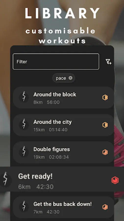 ⦿ Workout Library - A library of over 100+ workouts for all abilities, goals and workout types offers quick access to professional workouts. If you want to change a library workout, you can customise it to your liking.