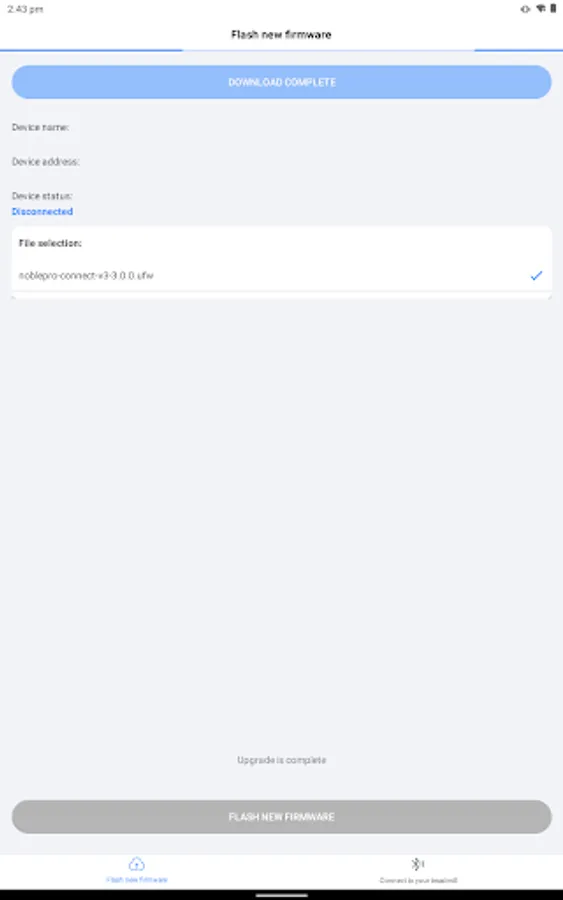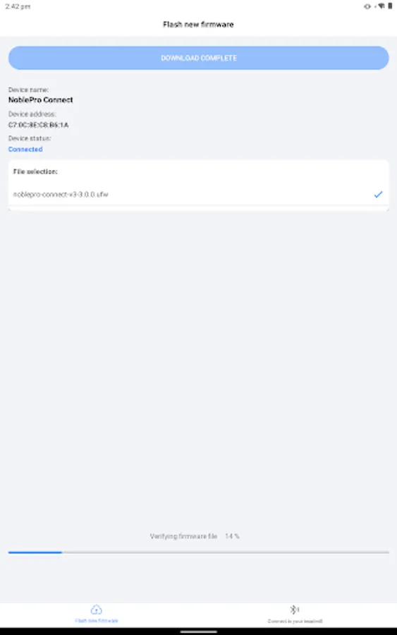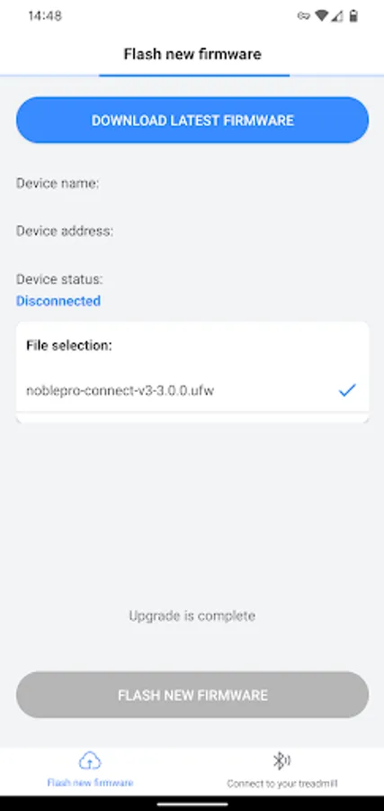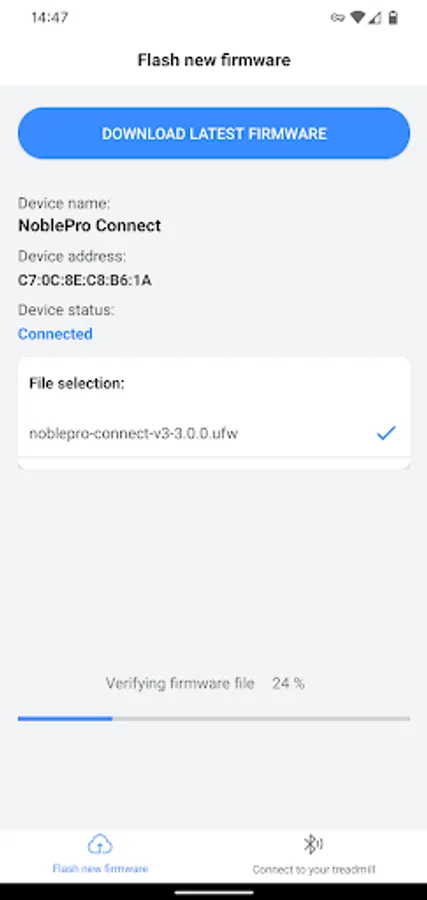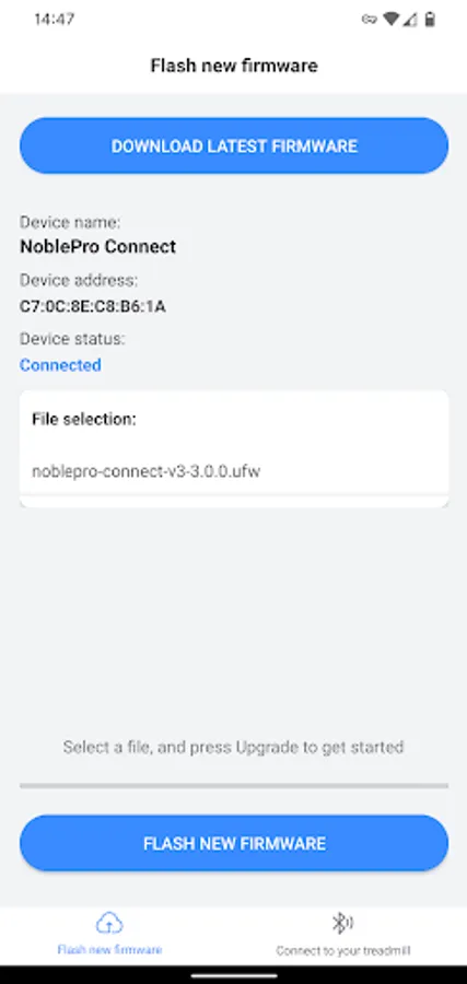 This app flashes new firmware to a Bluetooth chipset in our treadmills.