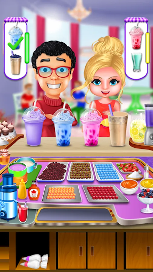 Enjoy the famous Boba tea recipe flavors and much more super exciting fun and taste in bubble recipe drinking games. Some flavors will be new for you and much more with different ingredients and Boba tea recipes that will make you wonder with their most delicious smoothies taste! Be creative and have fun making delicious tasty bubble tea in drinking games! Decorate Boba tea, serve them to your friends and play with a variety of ingredients and tasty bubble tea recipes. Bubble tea drinking games are perfect blending fun for Boba tea DIY recipe maker.
