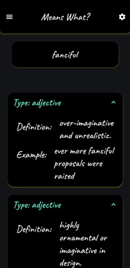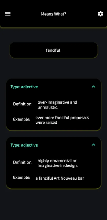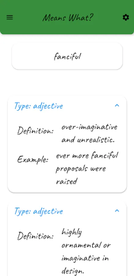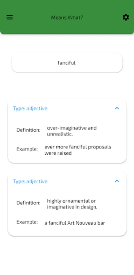 "Means What" is an attempt at creating a simple and easy to use dictionary app, nothing more, nothing less. It does not include any ads, any in-app purchases or any annoying and useless features.