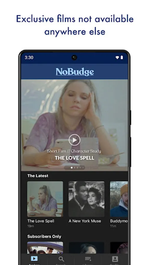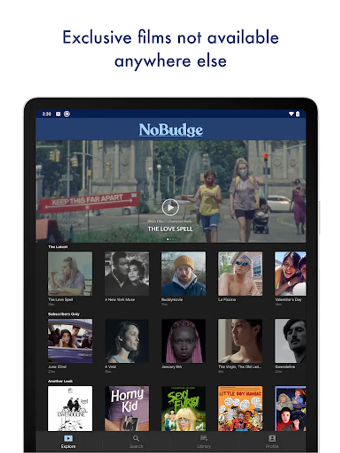 "Like a great film festival shorts section beamed into your home, NoBudge is one of the internet’s top showcases for independent work. The scope of its programming spans and defies genres; it’s a place where the concept of film-as-art always feels honored." -Eric Allen Hatch, Endcrawl.