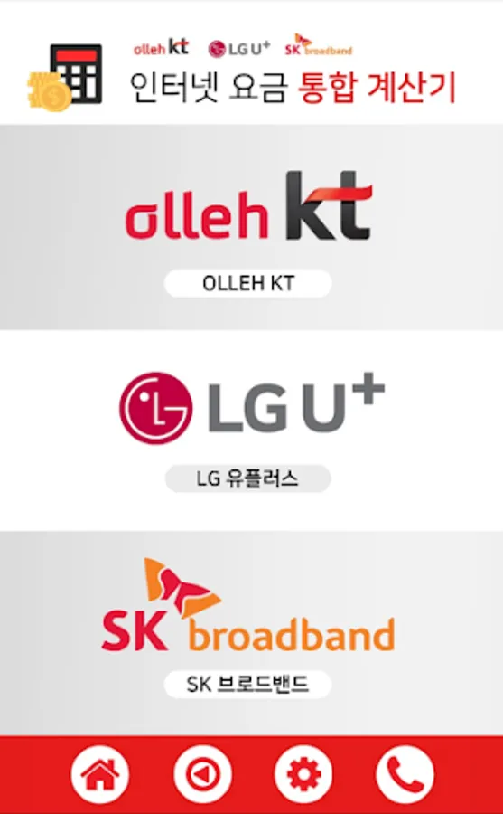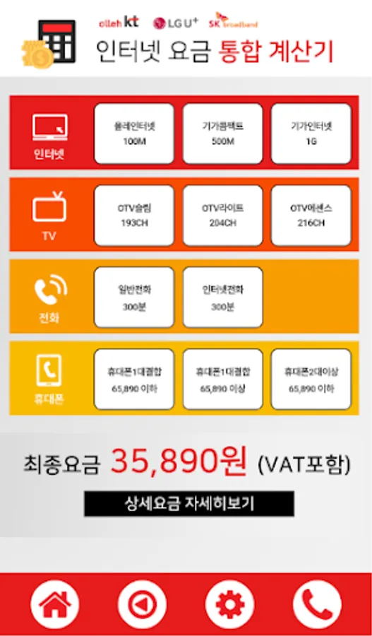 KT LG SK 인터넷가입 요금계산기 Screenshots