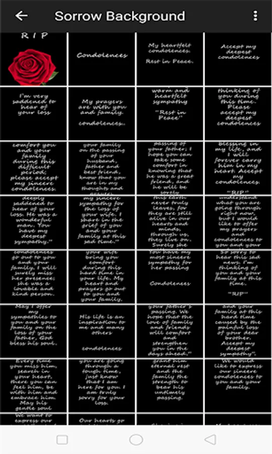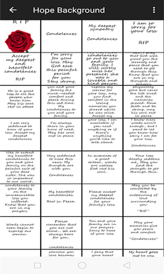 This Condolences Messages app aspires to make your messages more convenient, reliable and with speed just at your fingertips. Modern technology will provide faster and creative condolence messages with deep messages.