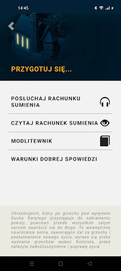 An application for smartphones that helps in spiritual preparation for the sacrament of confession. In the application you will find: