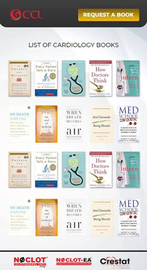 Noclot Library, an innovation by CCL is a new doctor app. Noclot Library is a bibliotheca comprising of best books on various medical topics. All what is needed is to download Noclot Library and the user is provided with a collection of books. A user can view and even download them in their phone library so that the e-book can be read later. Moreover, a request form is also provided so that the Cardiologists can make a request for a new volume. Upon receiving the request, the requested book will be added to the library and a push notification will be sent. CCL believes in innovating the field of healthcare therefore it is a step forward.