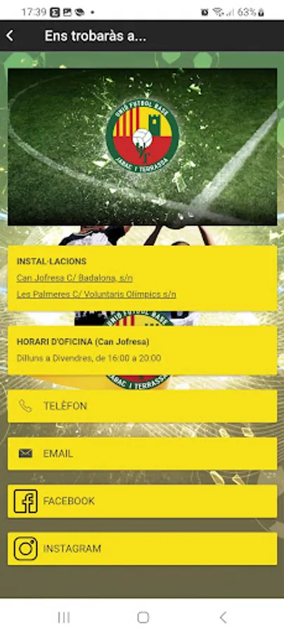 APP of the Jàbac Terrassa football club. You will find the following information: