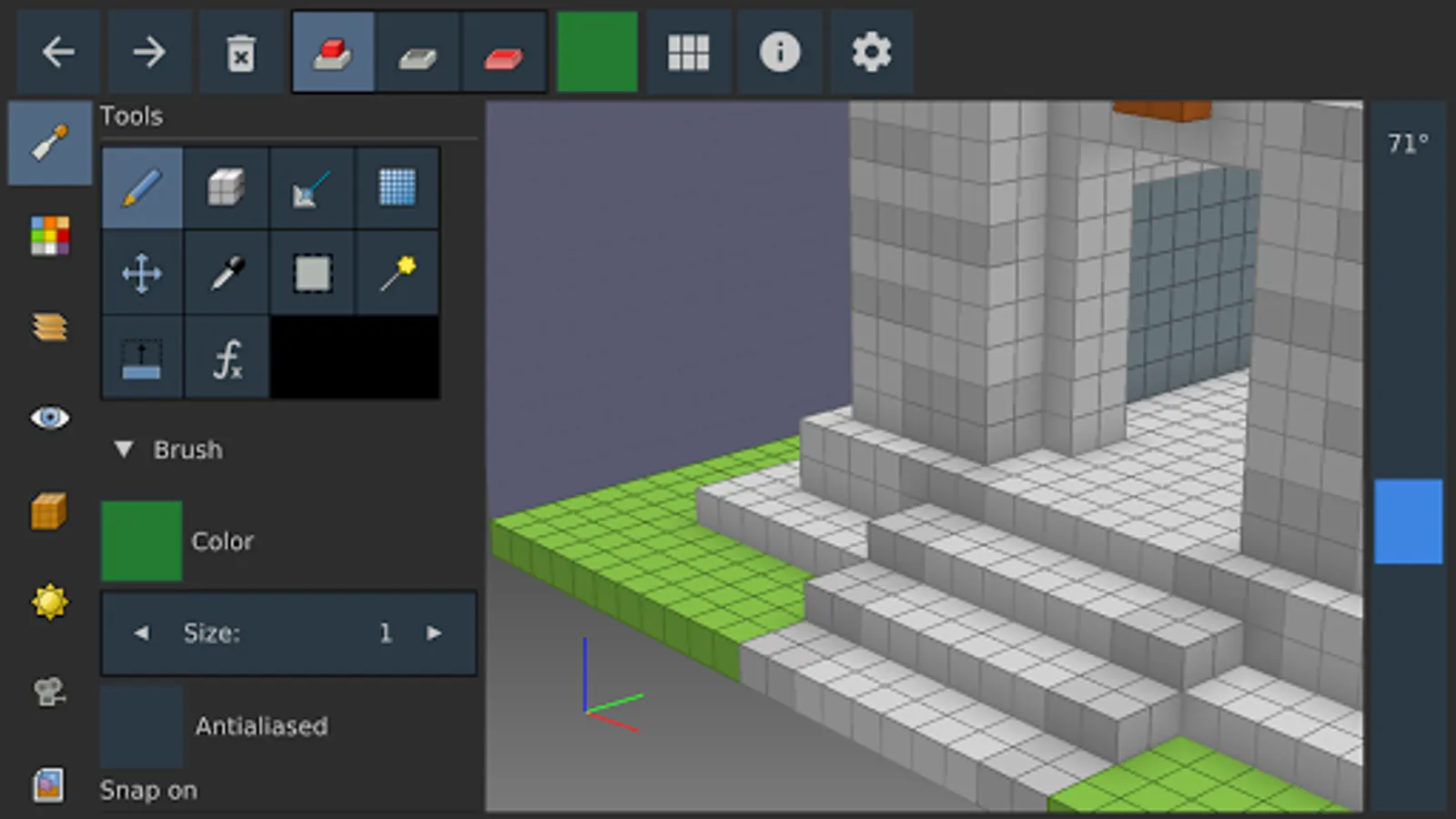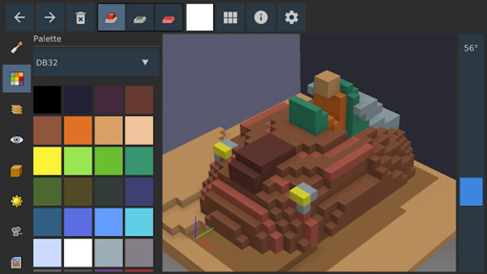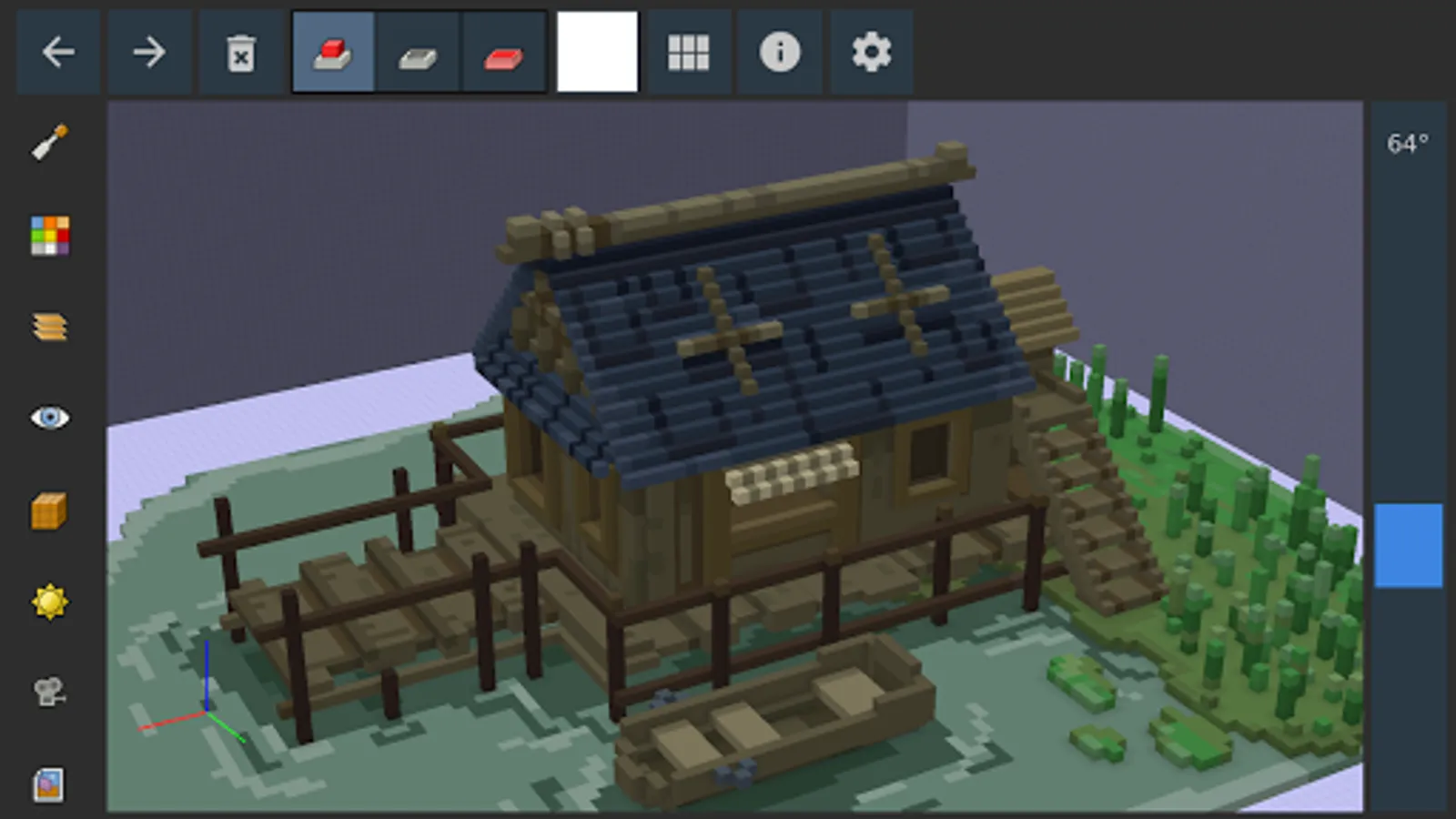 Goxel is a 3D editor for voxel art, that allows to easily create 3D models made of small cubic blocks (voxel = volumetric pixel).