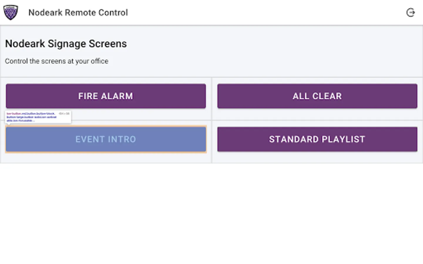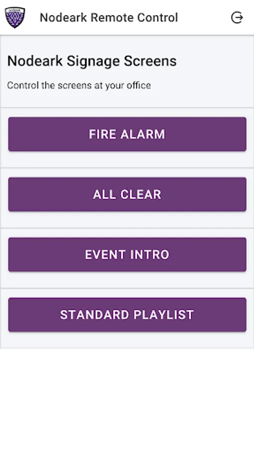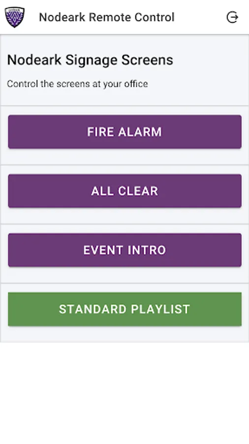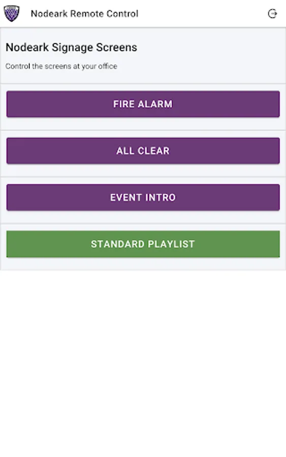 Control your Nodeark powered signage screens with this remote control app. Press the button of the desired scenario to instantly change the contents of one or many of your screens.