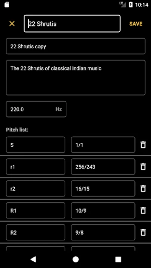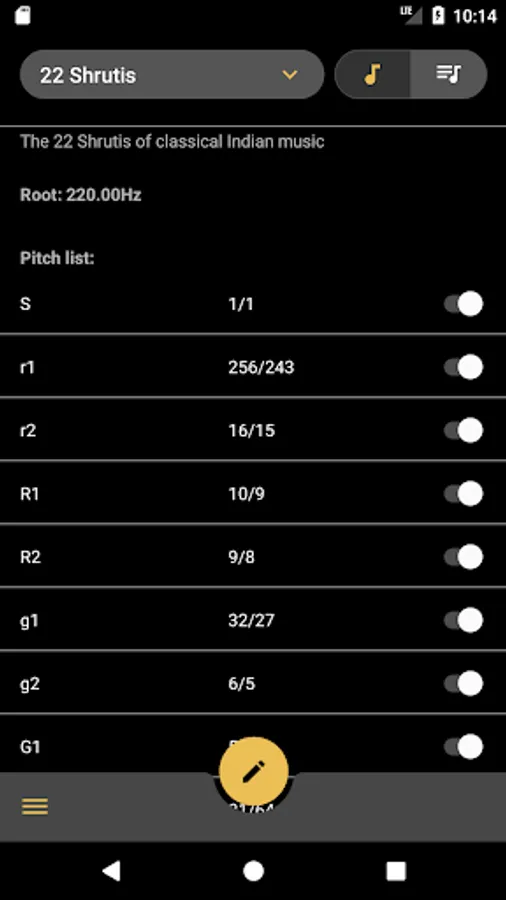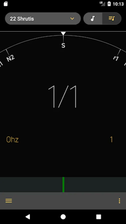 Each scale may have a different root note (1/1), and the root note frequency (1/1) can be adjusted while tuning.