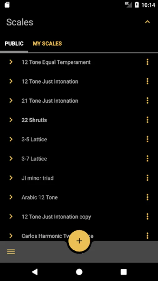 Each scale can be selected, and its notes can be played to get a feel for it before tuning your instrument.
