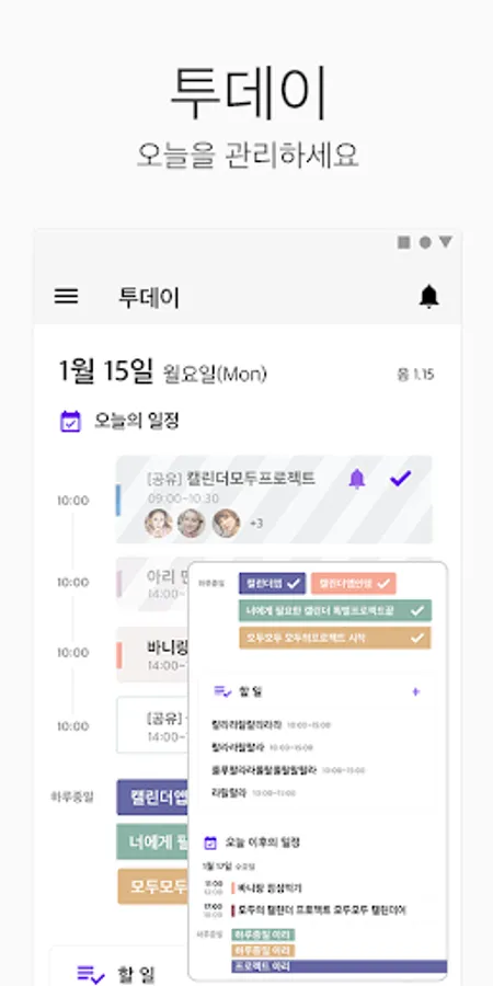 Today, you can easily see the 'weekly schedules'. There is also a feature that allows you to enter your schedule and todo immediately in Today ~!
