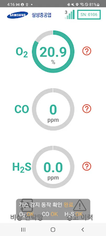 To check the details of dangerous situations, check the alarm history. The location is saved along with the gas value.