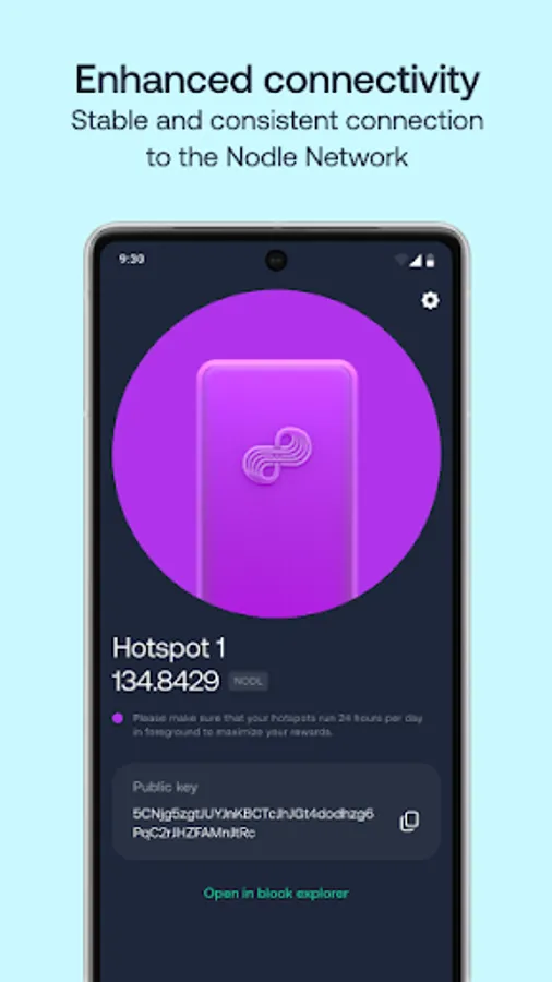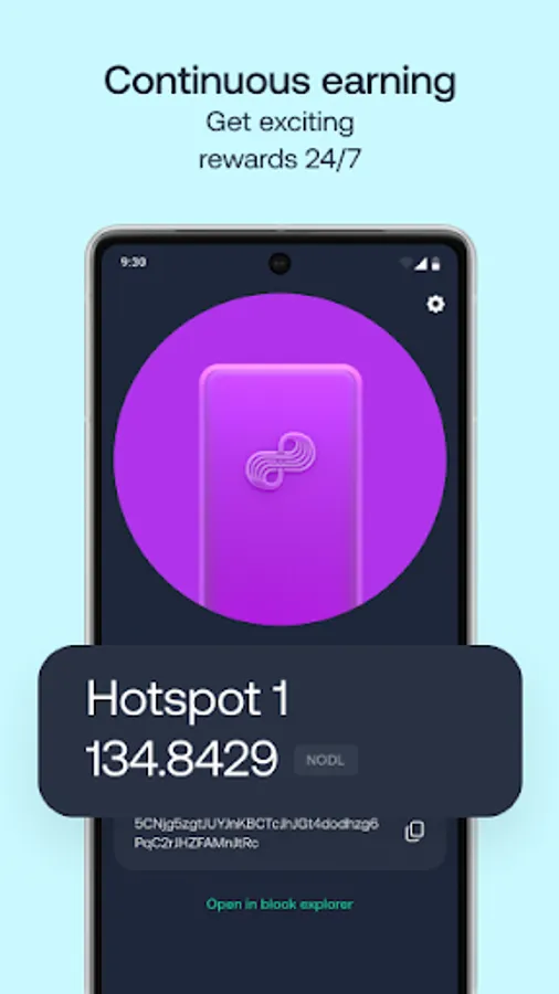 Earn crypto 24/7 by keeping the app up and running on the hotspot device. Maximize your NODL earnings by placing the Nodle hotspot far away from other phones you use to mine NODL to create wider coverage.