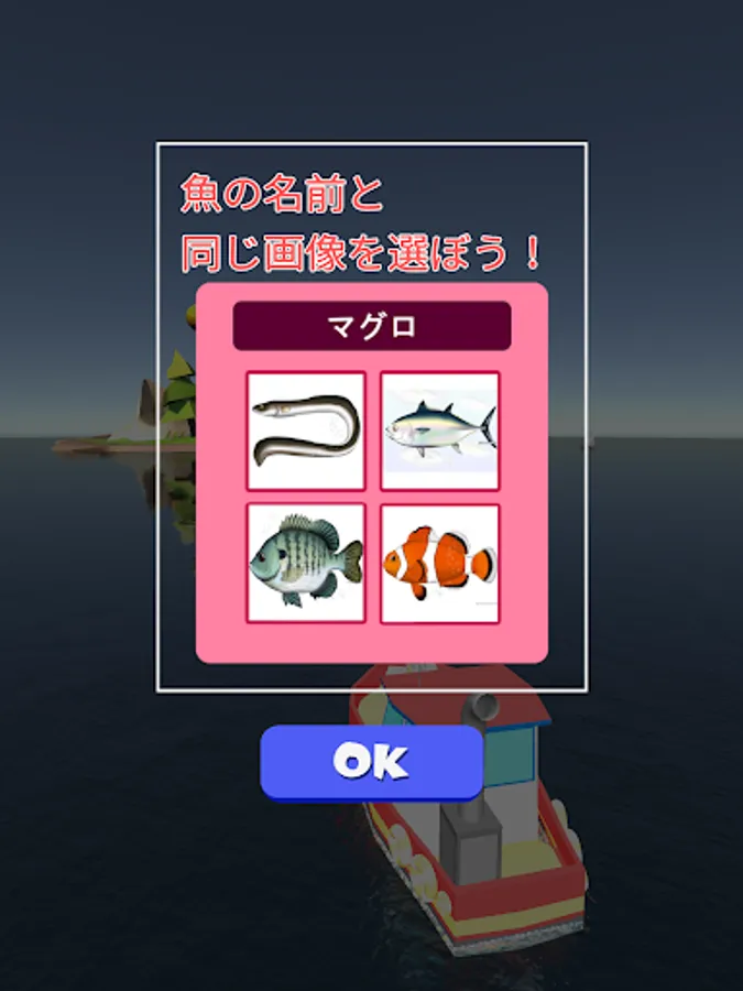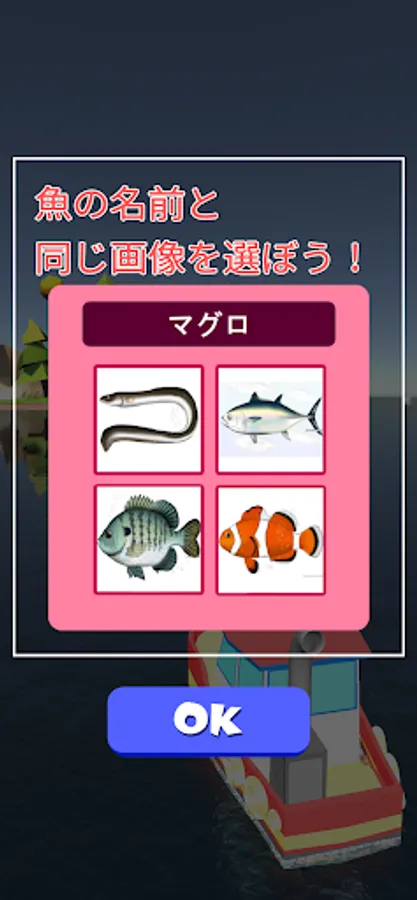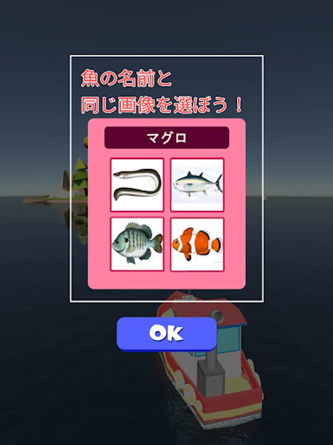 Aim to clear the stage by choosing a fish that matches the displayed name.
