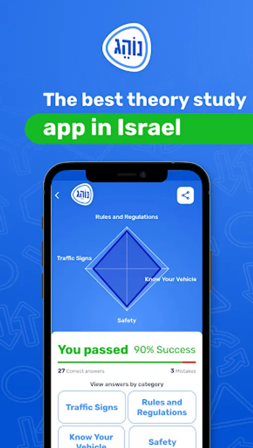 You no longer have to pay to learn theory. The best theory learning app in Israel is now on your cell phone, for free!