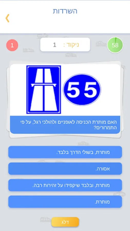 The app contains all the questions of the Ministry of Transport official, and allows you to practice them in two different game modes: