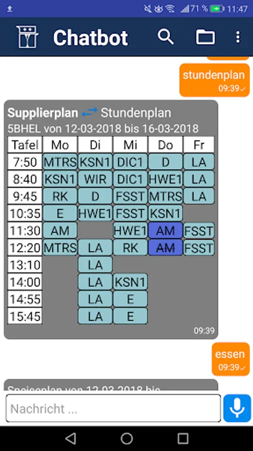 The HTL chatbot allows students of the HTL Hollabrunn, useful information and functions via chat to lock and enter.