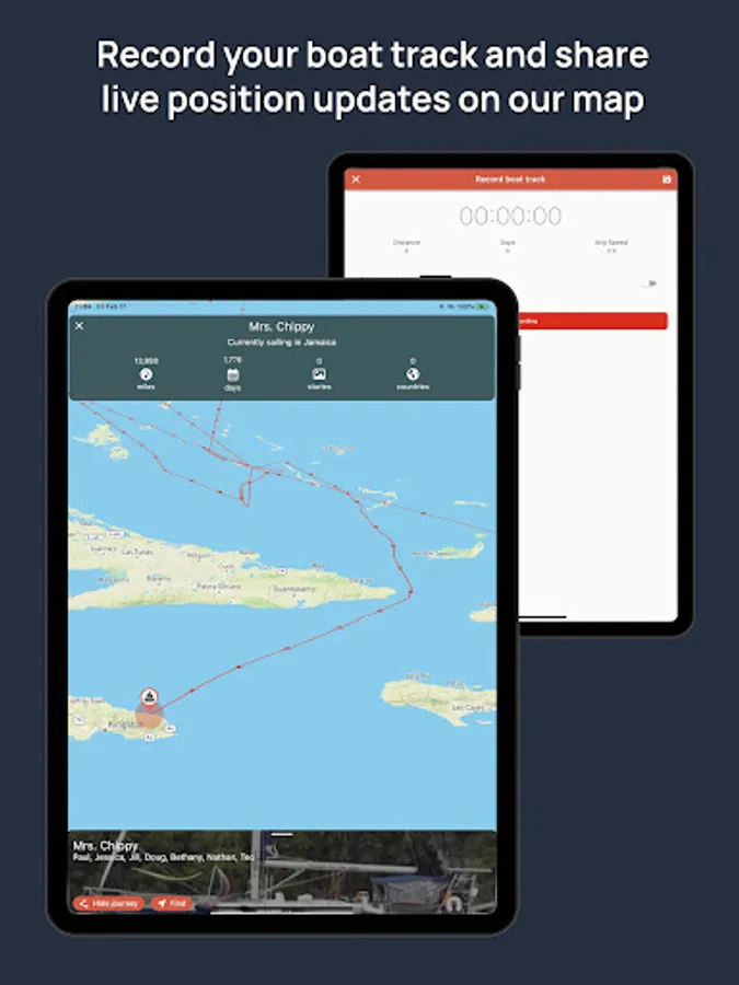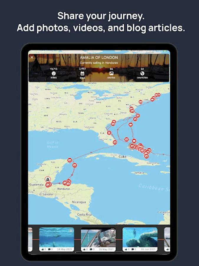 Add your boat to the map and record your adventures. You can even record your track in the app and share it live with friends and family back home. Add text, videos and blog links to your journey and build a permanent log available both in the app and on the noforeignland.com web site.
