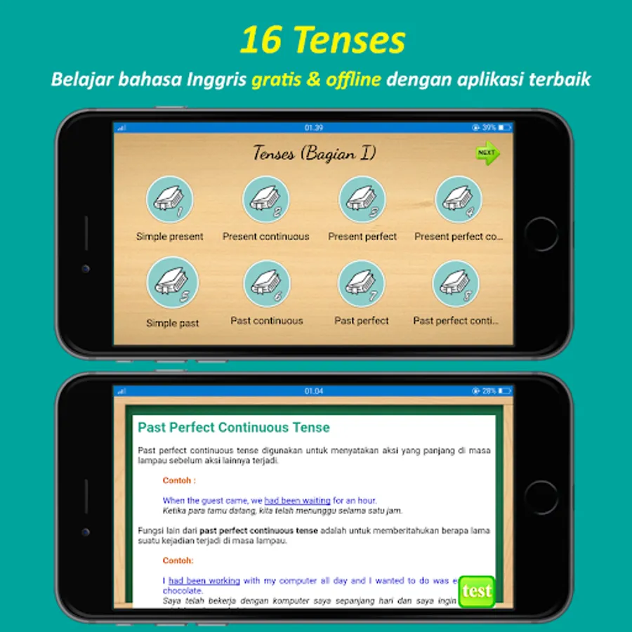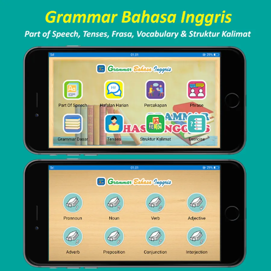 English grammar application consists of various English learning topics such as part of speech, to be, grammar, 16 tenses, and so on. And the main advantage of the English grammar application is having practice questions / exercises so that it will be easier to understand each of the English material.