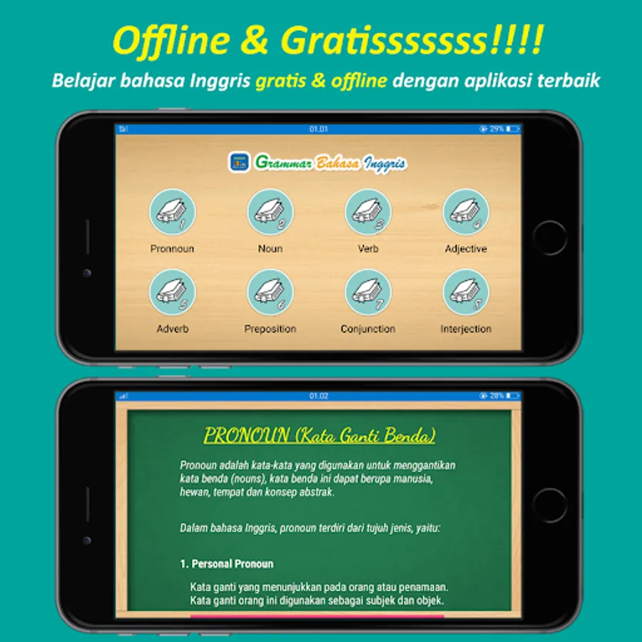 This English grammar application can be downloaded for free. And more importantly this English grammar application can be used without an internet network (offline). with this application you can learn English at home.