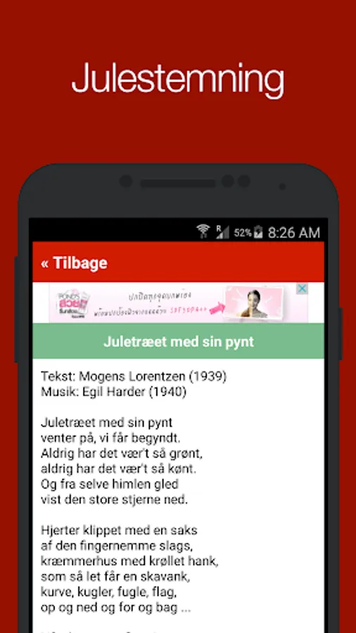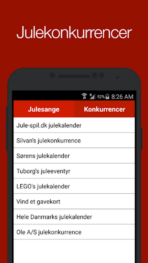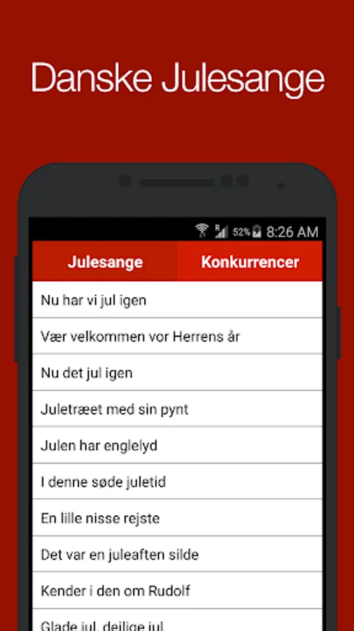 Juleappen is a free app that makes you ready for Christmas Eve. We have collected all the best Danish Christmas songs to you when it comes to dance around the Christmas tree. Besides a choice of traditional Christmas carols, we have also posted a list of the updated Danish Christmas contests.