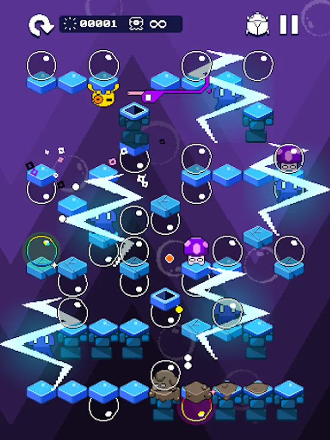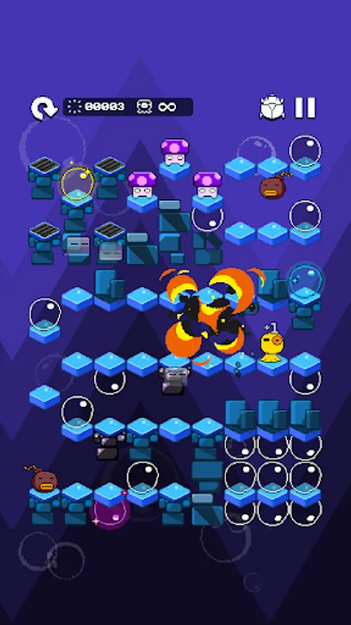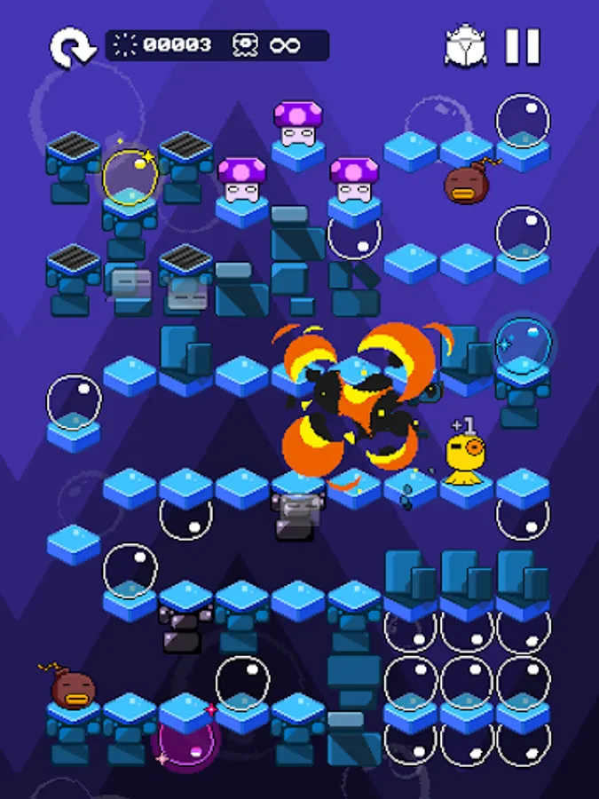 - 10 types of cartoonish creatures, bump them out before you’re surrounded!