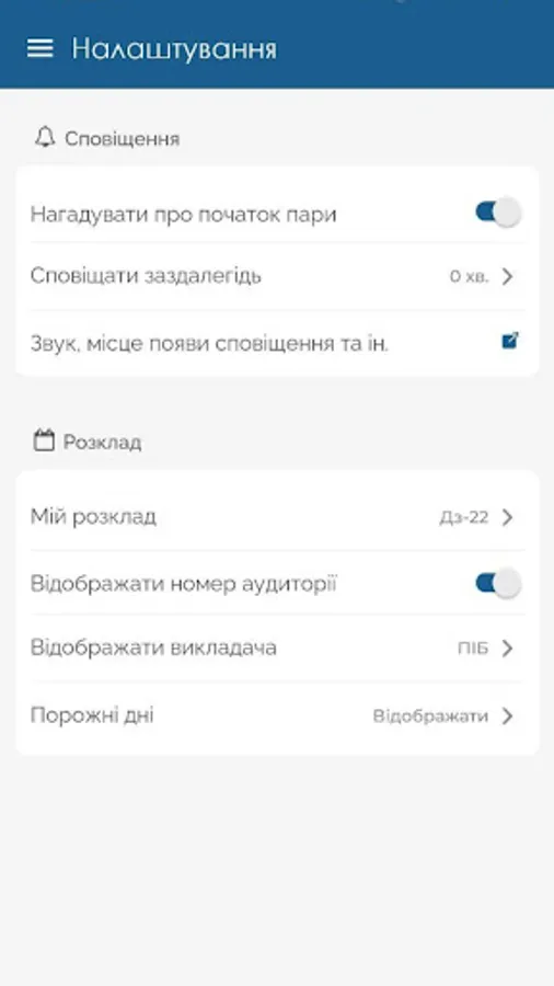The interactive schedule of UAD also provides an opportunity to create reminders about the start of classes. Students can set up the app to receive notifications a certain amount of time before each pair starts. This helps to avoid absences and tardiness while maintaining a disciplined approach to learning.
