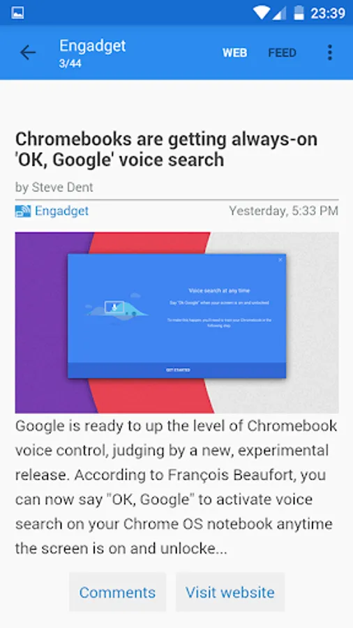 * Voice-Reading (Text-To-Speech): Listen to your news