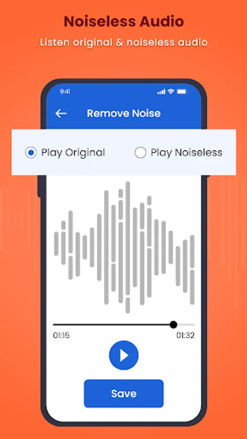 - Stop and save the recorded audio with noiseless audio or noise audio.