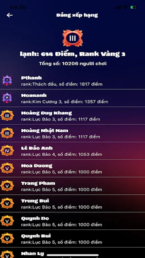 Leaderboard 7 levels : Bronze, SILVER, GOLD, PLATINUM, LUBA, DIAMOND, CHALLENGE