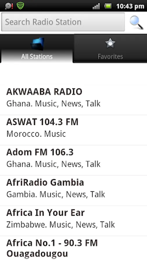 All African live radio is a free app that allows you to listen to live radio stations in Africa. Countries include Algeria, Burkina Faso, Burundi, Cameroon, Congo, Egypt, Ghana, Ivory Coast, Kenya, Morocco, Madagascar, Mozambique, Namibia, Nigeria, Rwanda, Senegal, South Africa, Seychelles, Sierra Leone, Tanzania, Togo, Uganda, Zimbabwe and North Africa. Genres include, Alternative, Arabic, Catholic, Christian, College, Country, Dance, Family, Gospel, Hip-Pop/Rap, Islam, Music, Oldies, R&B, Religious, Rock, Talk/News and many more top nigeria radio stations and african radio stations