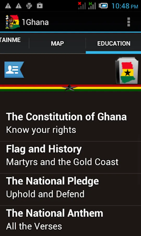 ➤Education - Know your rights with the Constitution of Ghana. Keep abreast of Ghana’s state of affairs, history, pledges, anthems, holidays etc