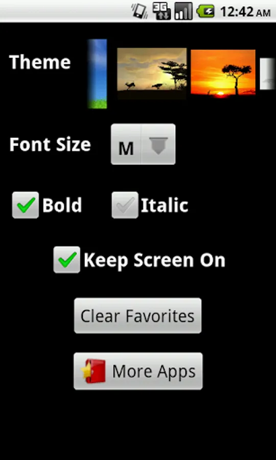 ★Personalize app - Change themes, font size and style, keep screen on/off etc