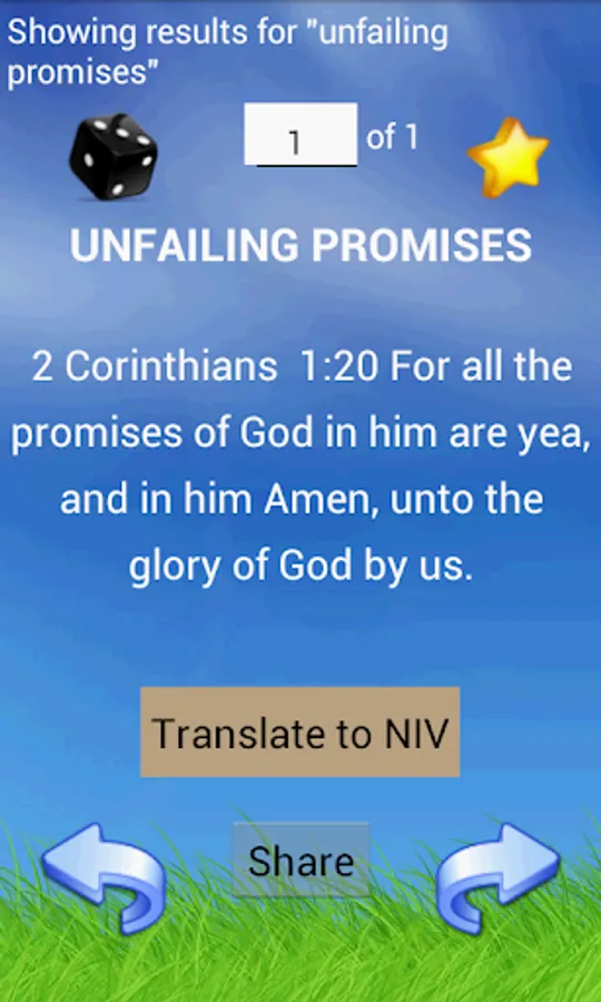 Bible Promises is an offline app that contains almost all the promises in the bible - Abundant Grace, Knowledge, Riches, Forgiveness, Peace, Strength, Utopian life in heaven etc etc. It comes in multiple translations and many features. Credits to Pastor Samuel Asiedu.