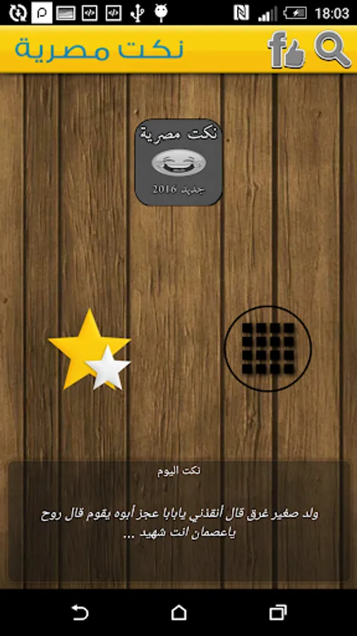 The application contains a large collection of Egyptian very funny jokes and the Egyptian dialect jokes and messages Mahshchin jokes and jokes and jokes Asahabay rigid and jokes Saaideh and Msatil nokat, nokta.