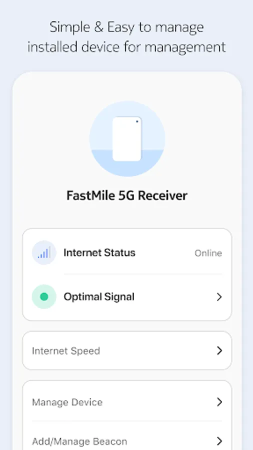 Nokia Wireless App provides installation guidance for FastMile broadband receiver devices. It will help you register a new device and find a suitable place for the installation. Nokia Wireless App can also be used to manage and monitor already installed devices.