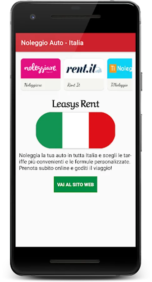 Are you looking for car rental services in Italy? Find all the car rental ads in our application. It provides you with the best platforms where you can find rental cars in any city in Italy. In this application you can find the list of websites for car hire in Italy. Search for thousands of car rental ads on these famous websites.