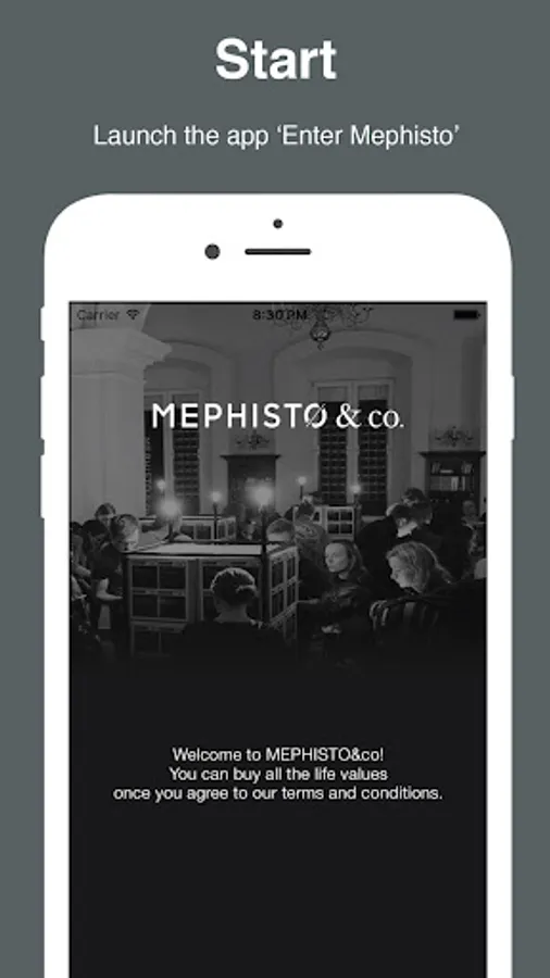 The app “Enter Mephisto” is an event-application that enables registration for and participation in ‘Being Faust – Enter Mephisto’, which is a ‘Big Game’: a physical game enhanced with online and social media elements, based on Johann Wolfgang von Goethe’s Faust. The game was designed by the Goethe-Institut Korea in cooperation with the Korean game developer NOLGONG.