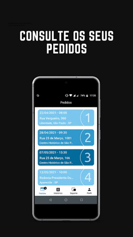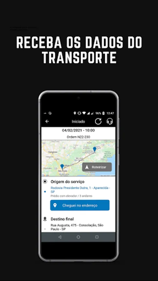 This first version will work to gather feedback and get suggestions for improving the user experience. In it, you can see the services that are available to you, the details (addresses, property types, items transported, services contracted and values), to route and trigger the support with us, if necessary.