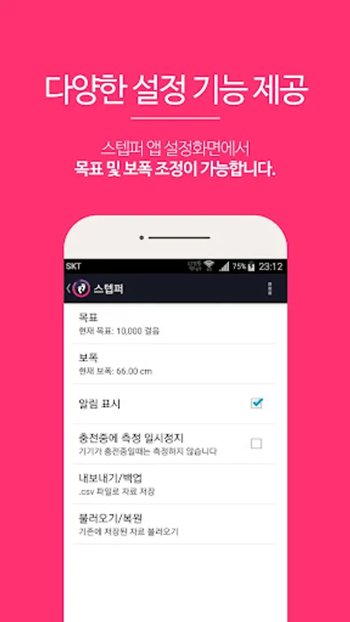 You can adjust your stride length in the settings screen for accurate step count measurement.