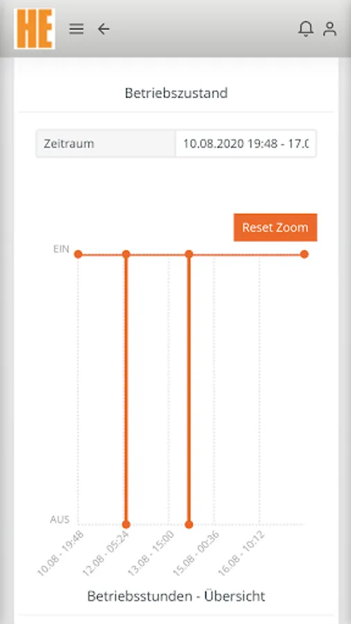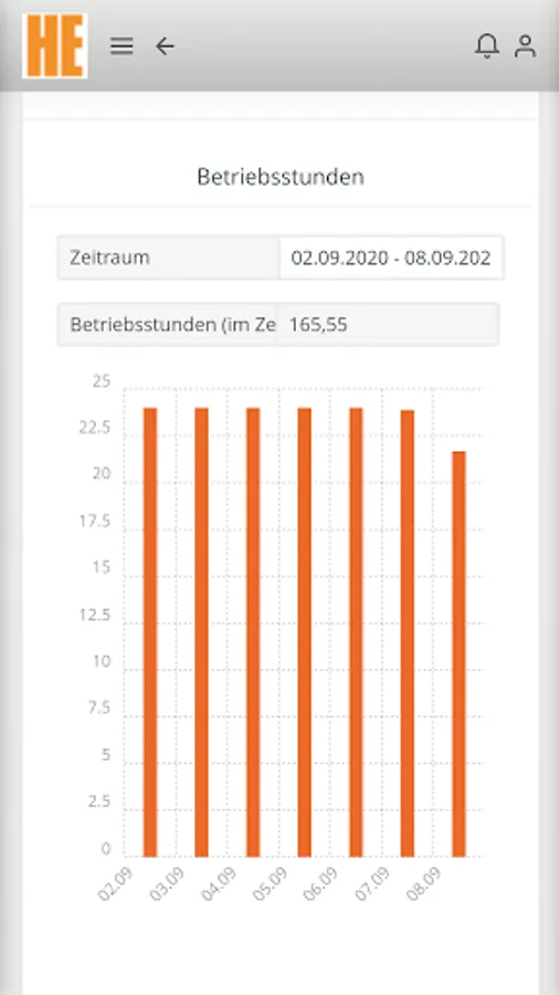• Display of the operating hours and the operating status (current and historical)