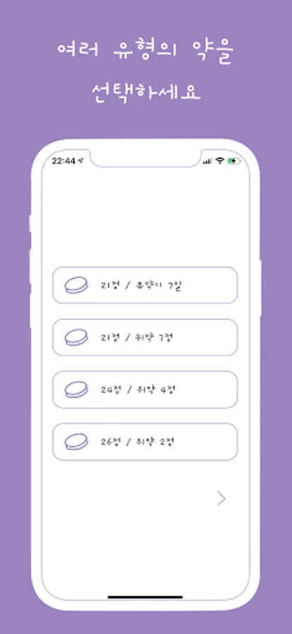 You can choose from several drug types, including 21 tablets, 7 days withdrawal period, 21 tablets, 7 placebo tablets, 24 tablets, 4 placebo tablets, and 2 placebo tablets.
