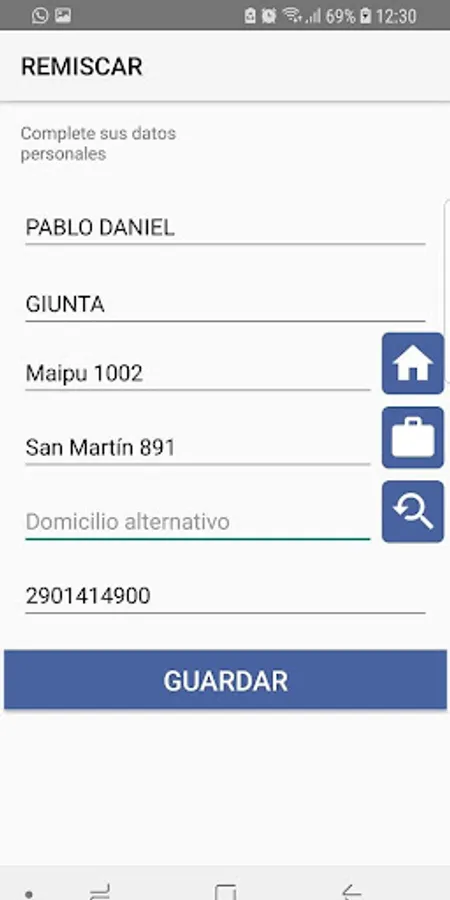 Application to apply online remis, Carlitos Agency and Bahia Hermosa, Ushuaia Tierra del Fuego.