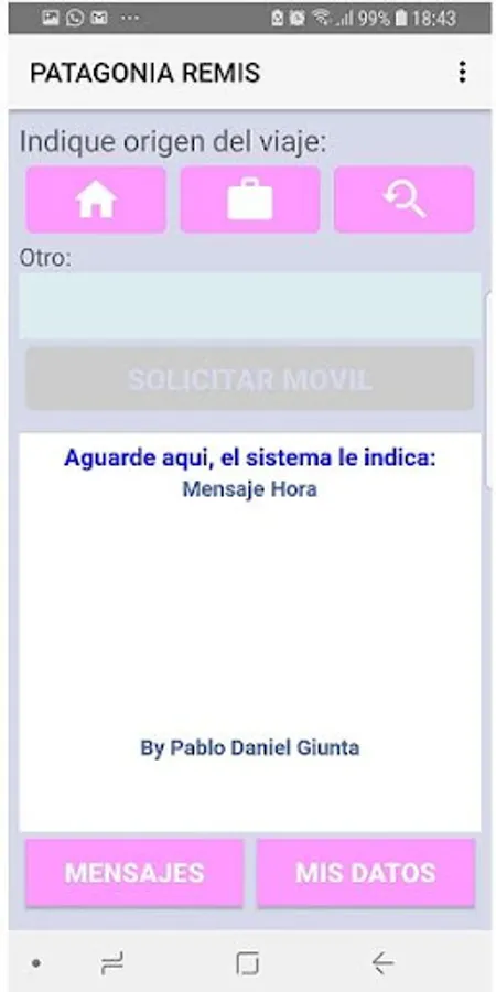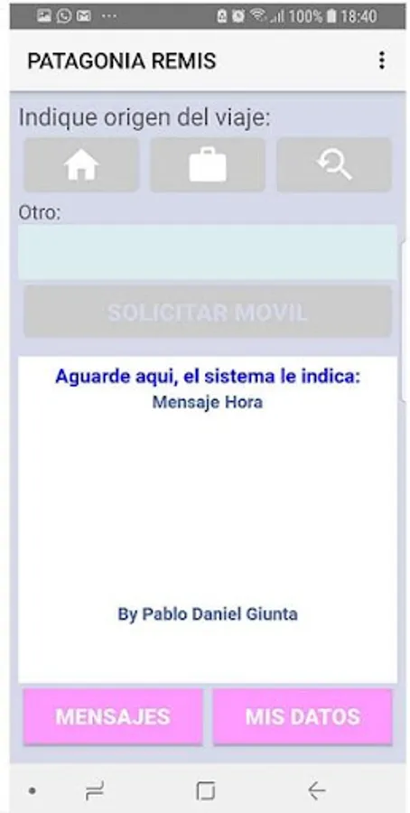 Application to request Remis Remis in Cooperative Patagonia, Rio Grande Tierra del Fuego Argentina.