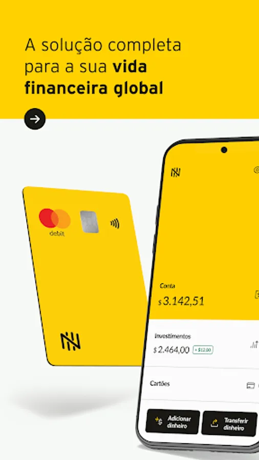 Financial solutions in dollars for Brazilians: global account with no opening or maintenance fees with an international debit card to make purchases online and in more than 180 countries around the world. In a few clicks, you can exchange with transparent rates, make transfers and invest in global markets. All this in a 100% digital way.