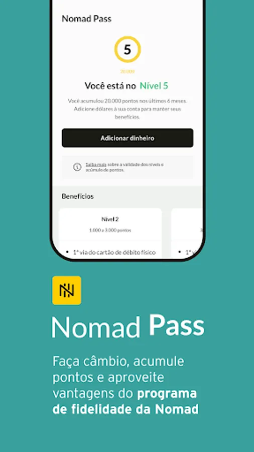 The greater the number of points in the Nomad Pass, the less you pay in the service fee to add balance to your global digital account, which can reach as little as 1%.